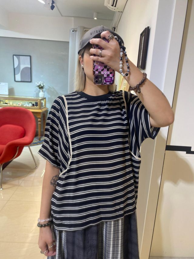 直紋間條恤+小背心 SET #A2607014