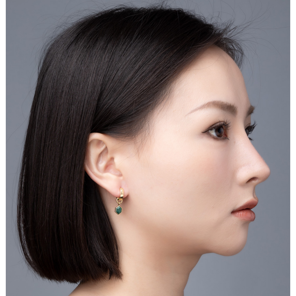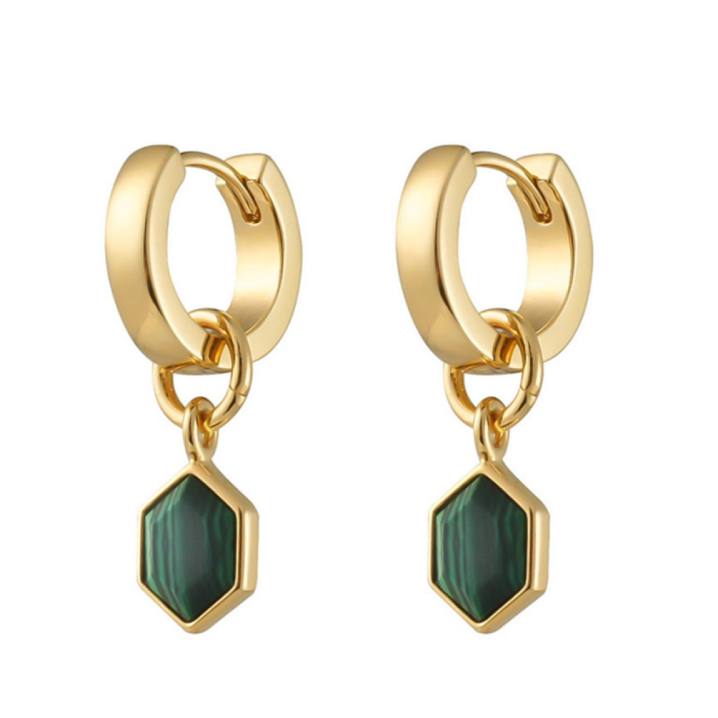 六角形孔雀石耳環 NF1035E-7A-C