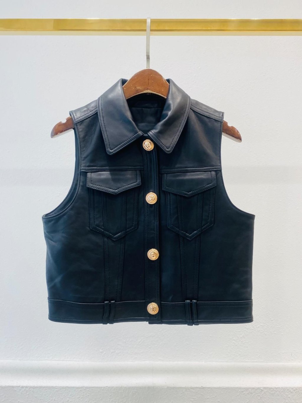主頁 C9羊仔皮金鈕修身顯瘦皮背心