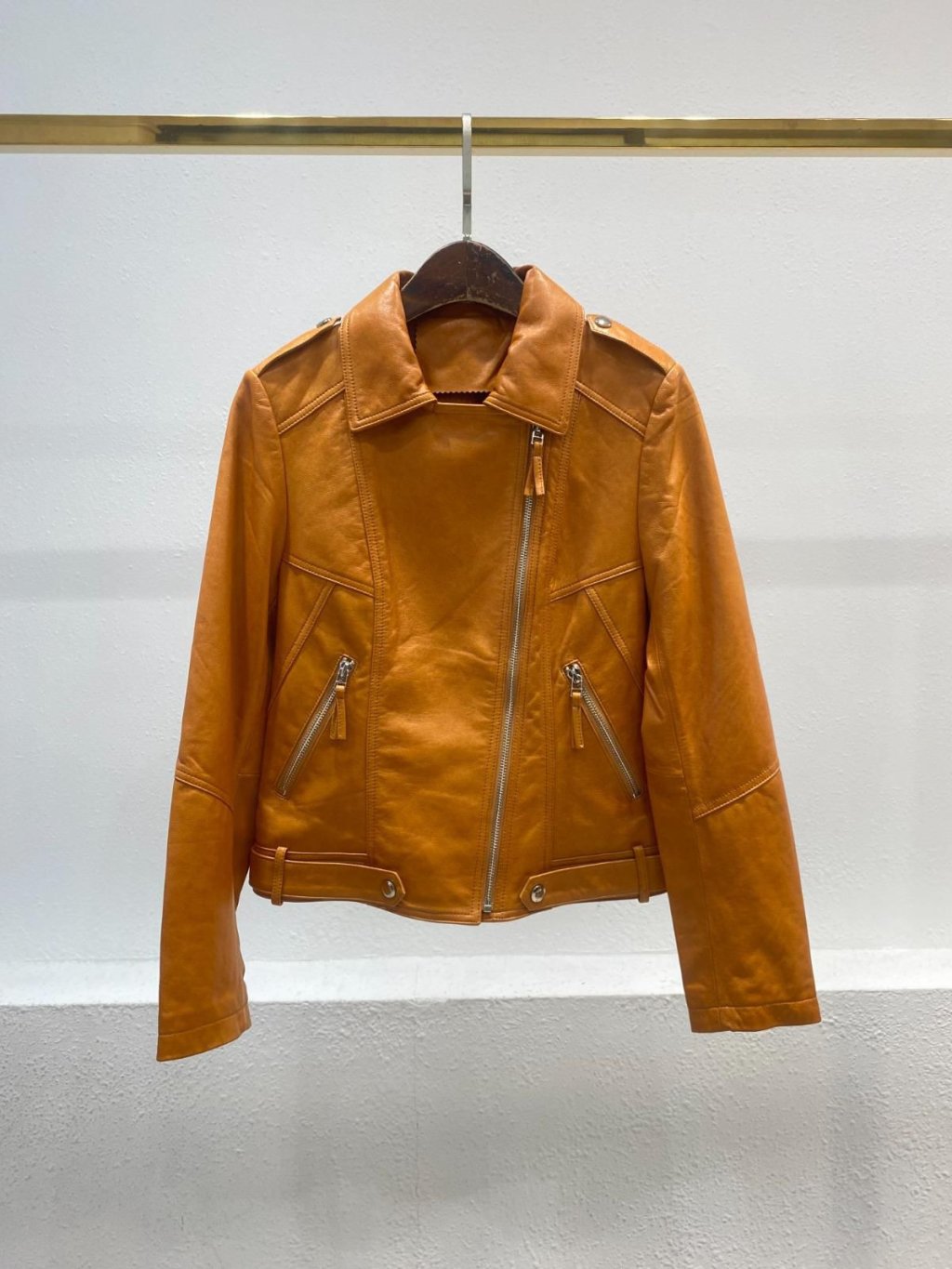 C11羊仔皮 Vintage 橙啡色 Biker 皮褸