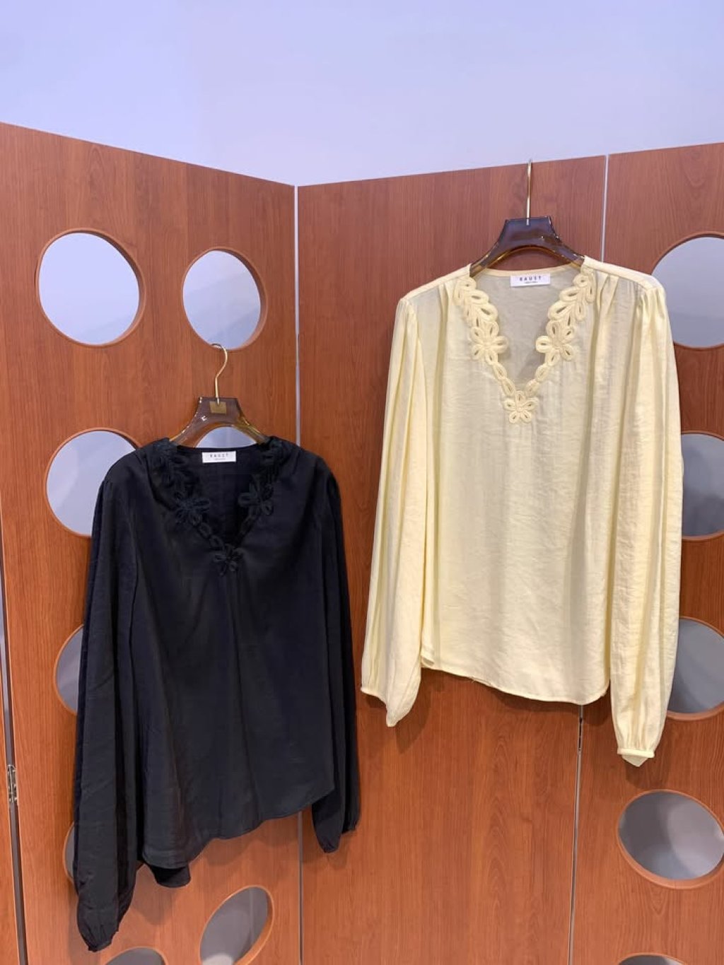 C6 V領綉花燈籠袖Top